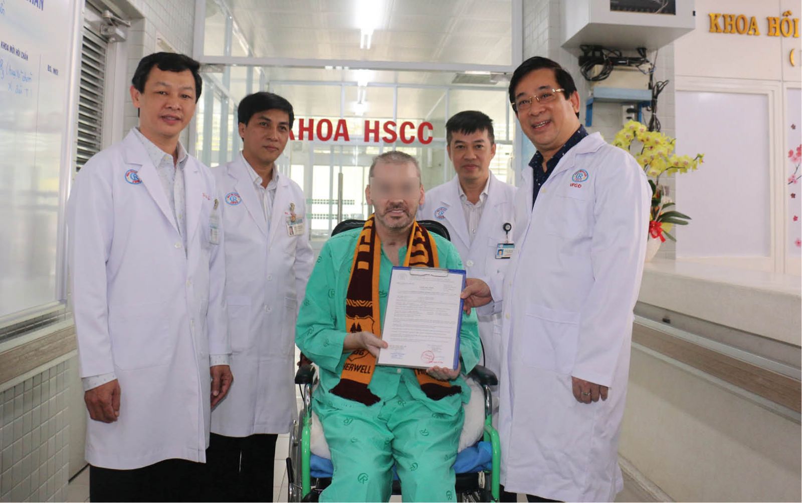 Bệnh nhân nam phi công người Anh nhiễm covid-19 - nhận giấy chứng nhận xuất viện sau khi được điều trị thành công tại Việt Nam. Ảnh: suckhoedoisong.vn