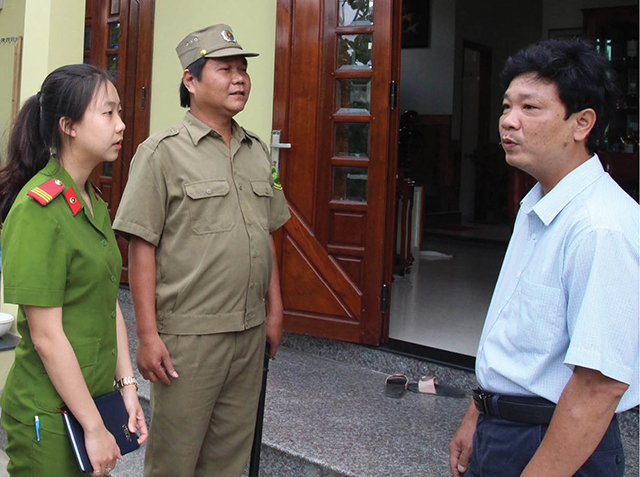 Bảo vệ tổ dân phố và cảnh sát khu vực phường Phú Hiệp (TP. Huế) thường xuyên về với người dân để nắm tình hình