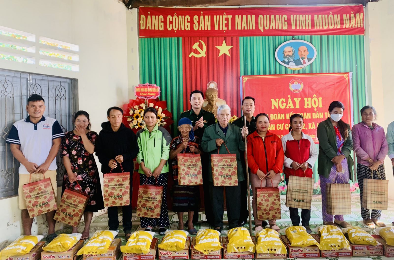 HNN.VN - Ngày 8/11, tham dự chương trình ngày hội đại đoàn kết ở khu dân cư tại thôn Ca Cú 2, xã Hồng Vân (A Lưới), Đồn Biên phòng cửa khẩu Hồng Vân đã tặng 13 suất quà cho các hộ gia đình thuộc diện khó khăn trên địa bàn, mỗi suất trị giá 500 nghìn đồng.