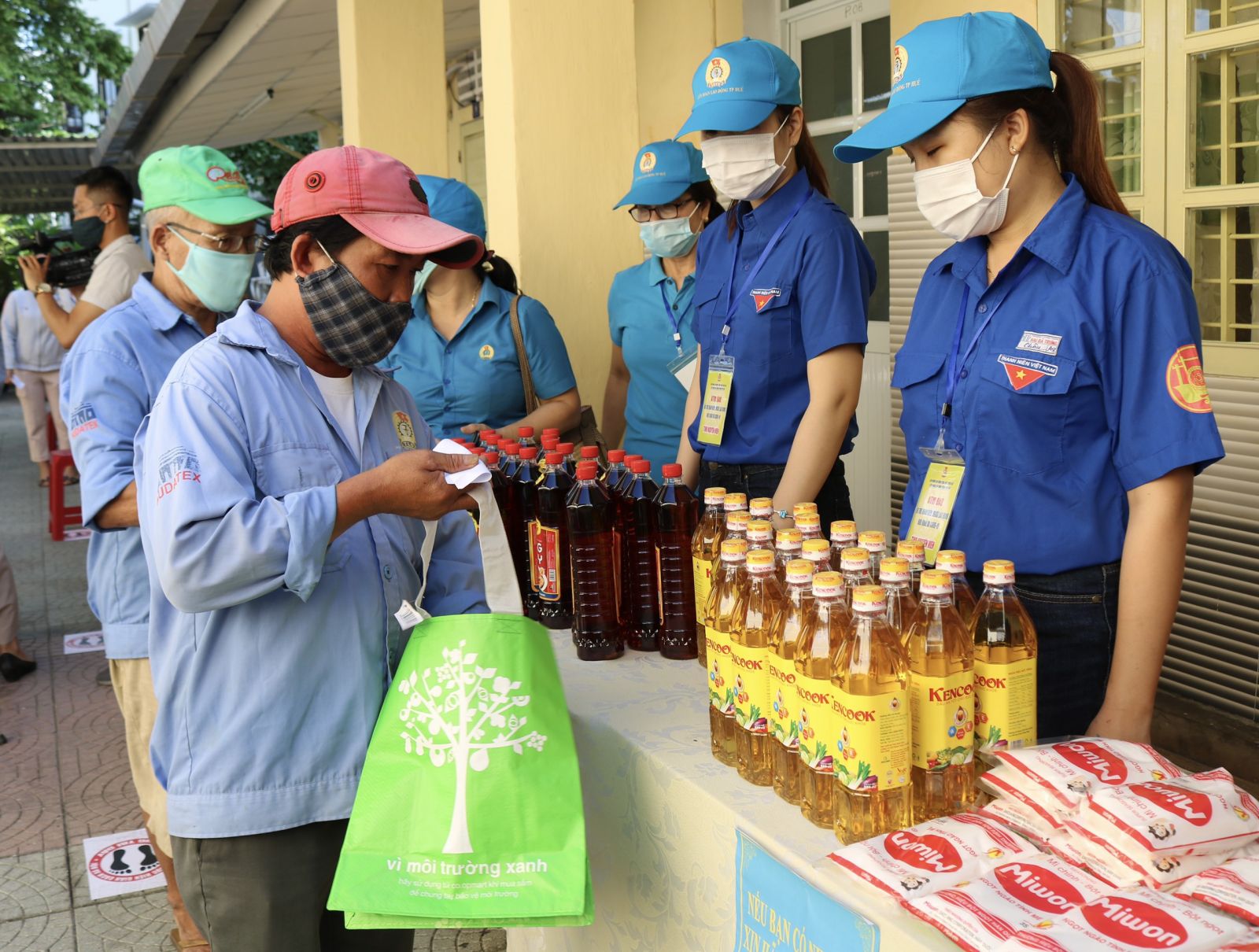 Người lao động mua sắm tại Gian hàng 0 đồng do LĐLĐ thành phố tổ chức