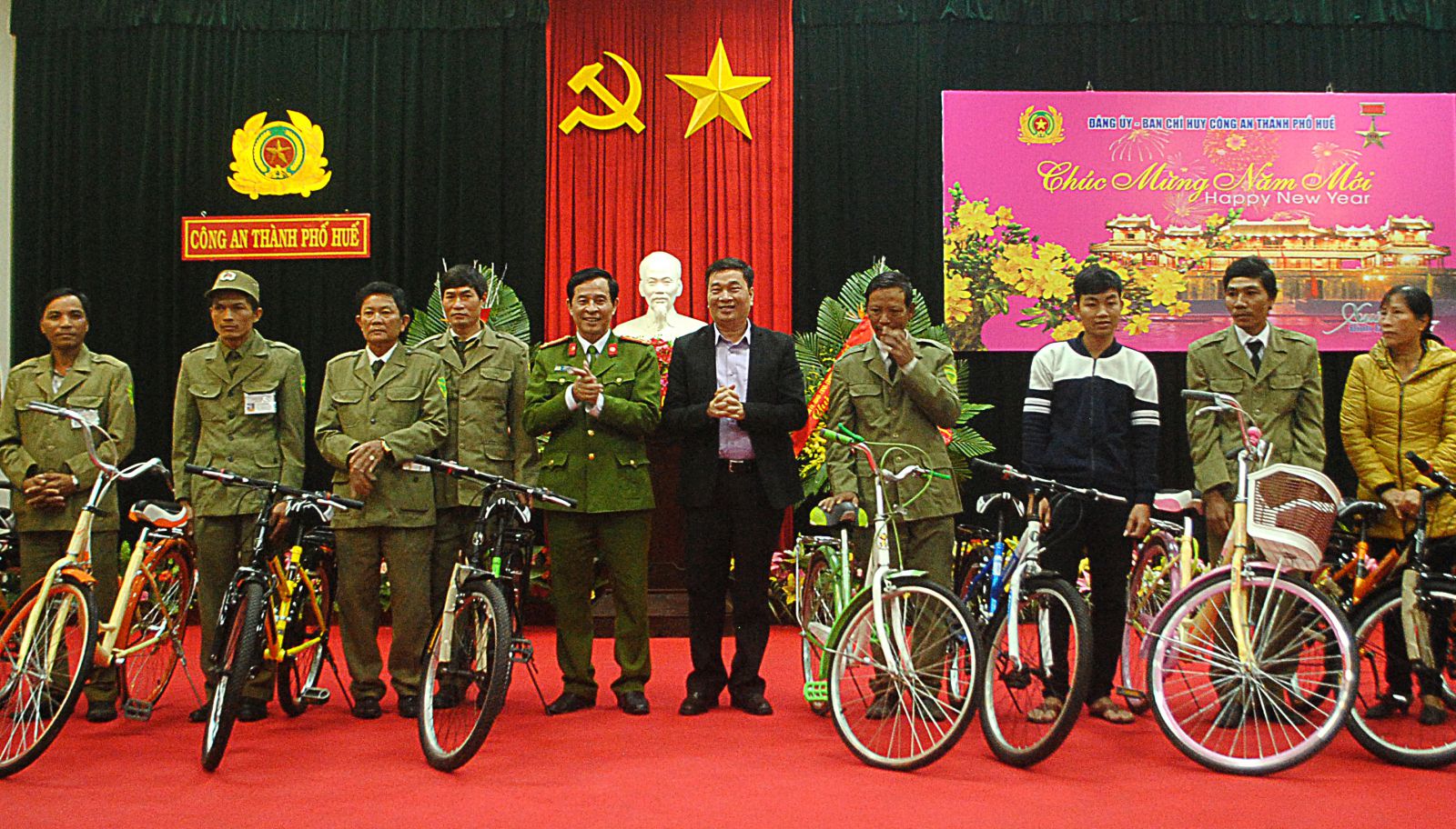 Tại buổi lễ, Doanh nghiệp Duy Trí chuyên kinh doanh xe đạp điện và xe đạp đã phối hợp với công an TP. Huế trao 23 xe đạp cho những quần chúng có nhiều thành tích, trong đó có những người tích cực giúp lực lượng công an phá thành công chuyên án cướp ngân hàng rúng động Huế vào tháng 12/2016.
