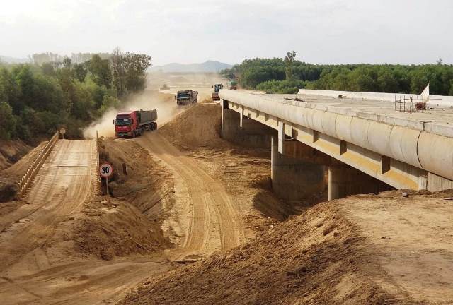 Thi công gói thầu 10, 11 cao tốc Cam Lộ - La Sơn. Ảnh: NGUYỄN KHÁNH