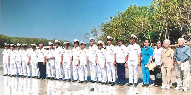 Ông Vĩnh Mẫn và vợ (thứ nhất và thứ hai, từ phải sang) trong chuyến về nguồn cùng các thành viên Đoàn tàu không số, năm 2008. Ảnh: ct.qdnd.vn