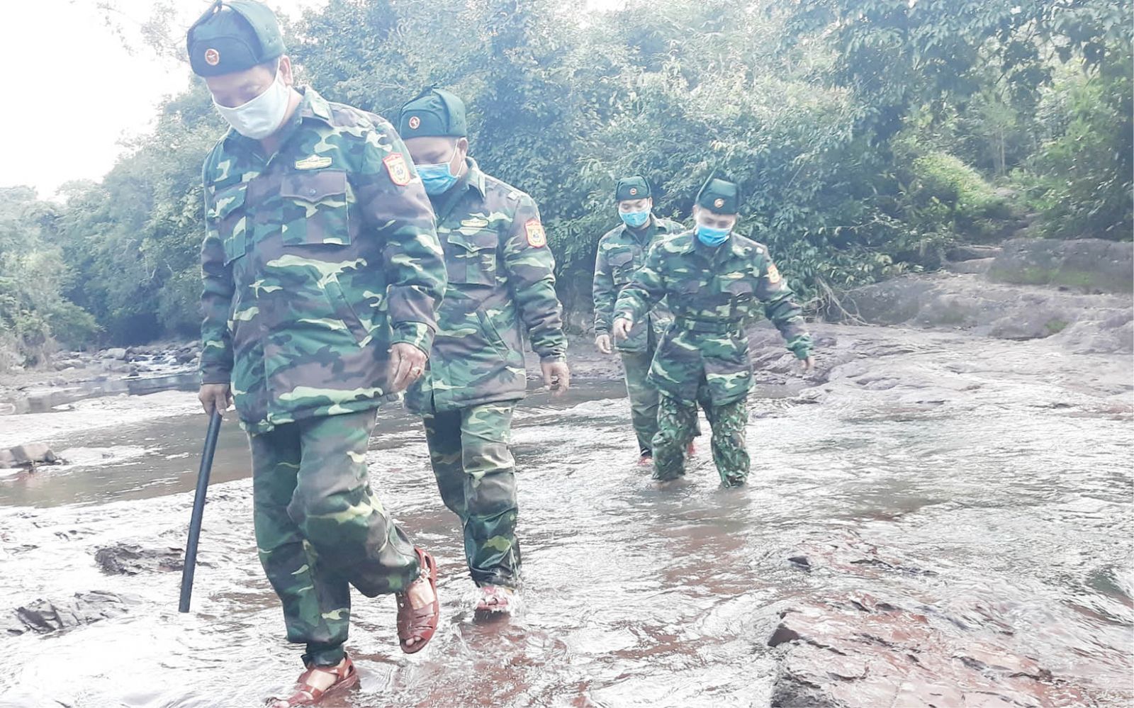 Cán bộ, chiến sĩ Đồn Biên phòng cửa khẩu Hồng Vân trên đường tuần tra, “bám” chốt bảo vệ biên giới và chống dịch COVID-19