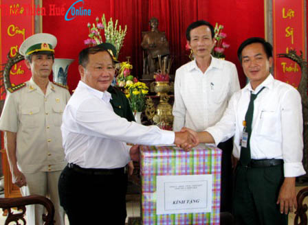 Phó Chủ tịch UBND tỉnh Đinh Khắc Đính tặng quà cho Ban Quản lý Nghĩa Trang Liệt sỹ Quốc gia Đường 9