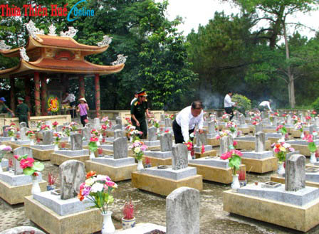 Thắp hương trên các phần mộ của các anh hùng liệt sỹ