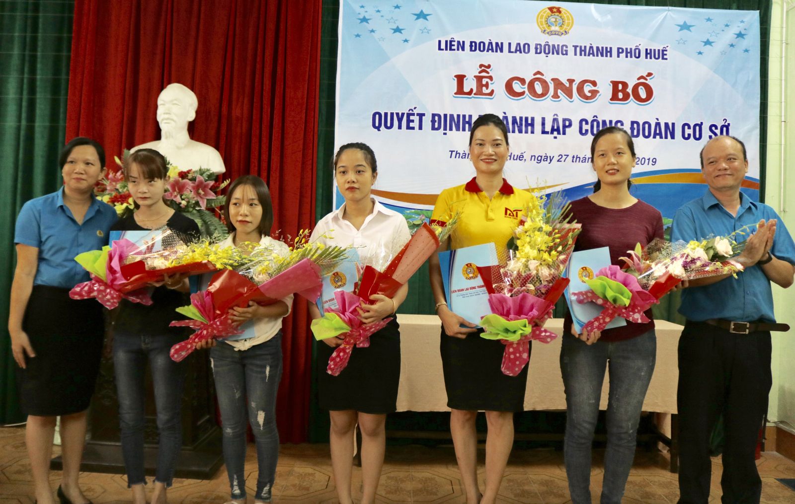 Đại diện LĐLĐ TP. Huế trao quyết định thành lập cho các CĐCS