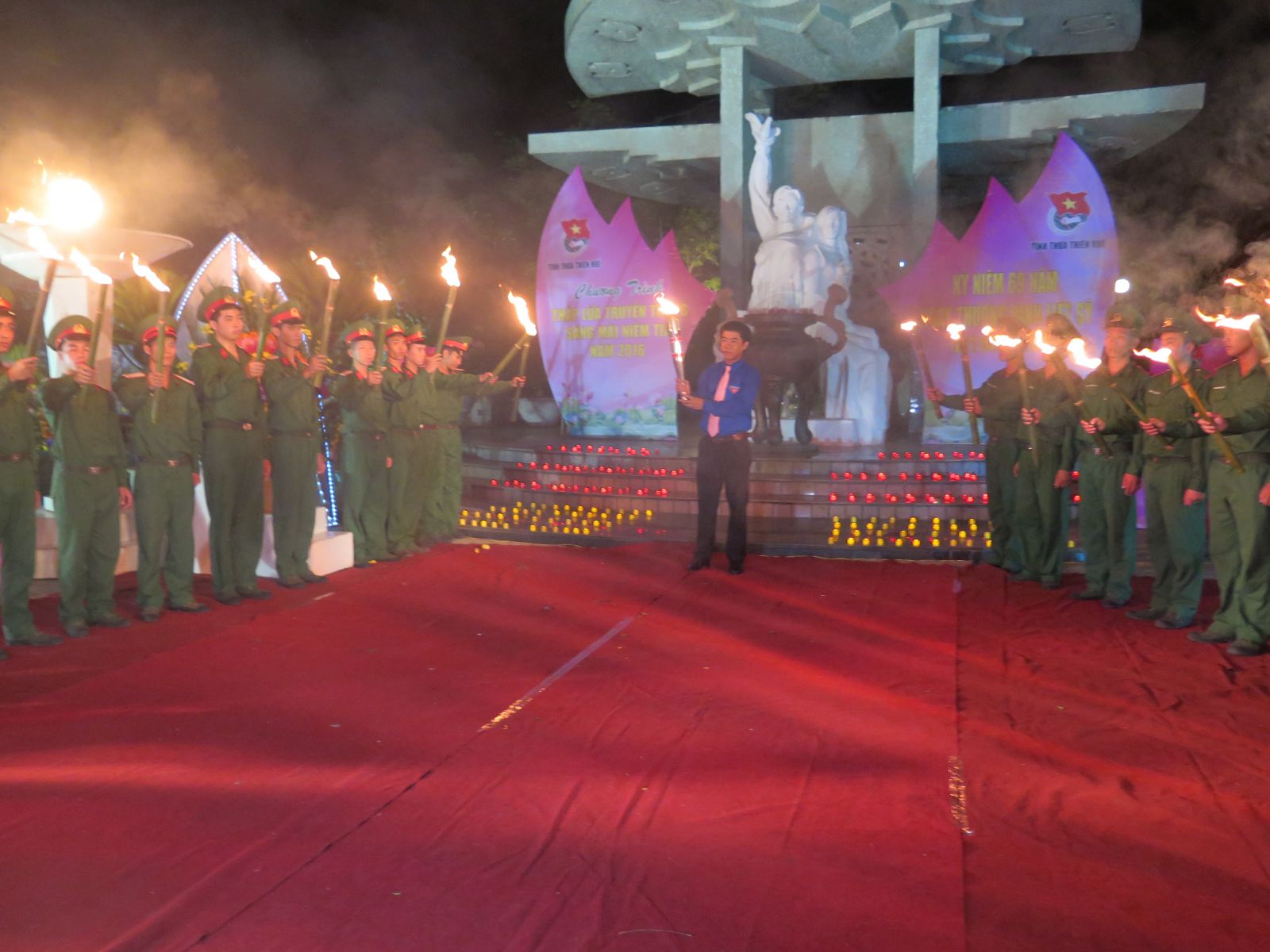 HNN.VN - Tối 26/7, Ban Thường vụ Tỉnh đoàn tổ chức chương trình “Thắp lửa truyền thống, sáng mãi niềm tin” tại Nghĩa trang Liệt sĩ TP Huế. Đến dự có các ông: Bùi Thanh Hà, Phó Bí thư Thường trực Tỉnh ủy; Nguyễn Nam Tiến, UVTV Tỉnh ủy, Chủ tịch UBMTTQVN tỉnh; Đinh Khắc Đính, Phó Chủ tịch UBND tỉnh; đại diện các sở, ban, ngành, địa phương và hơn 1.000 đoàn viên, thanh niên trong toàn tỉnh.
