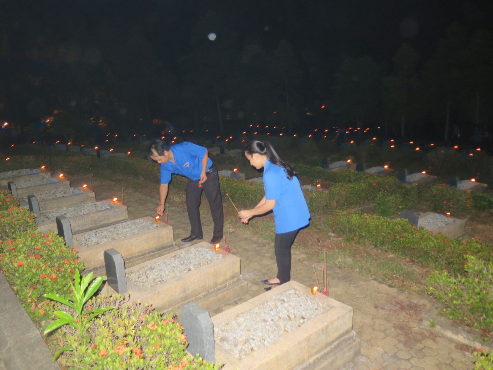 | ĐVTN thắp nến tại các phần mộ liệt sĩ |