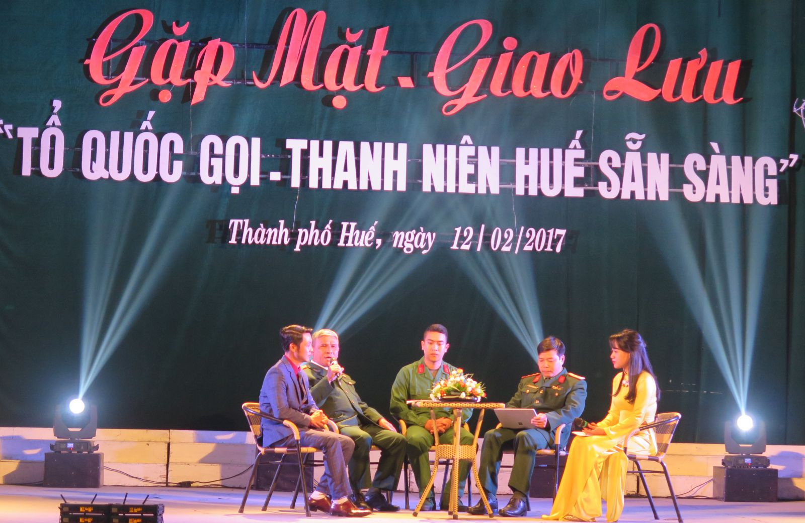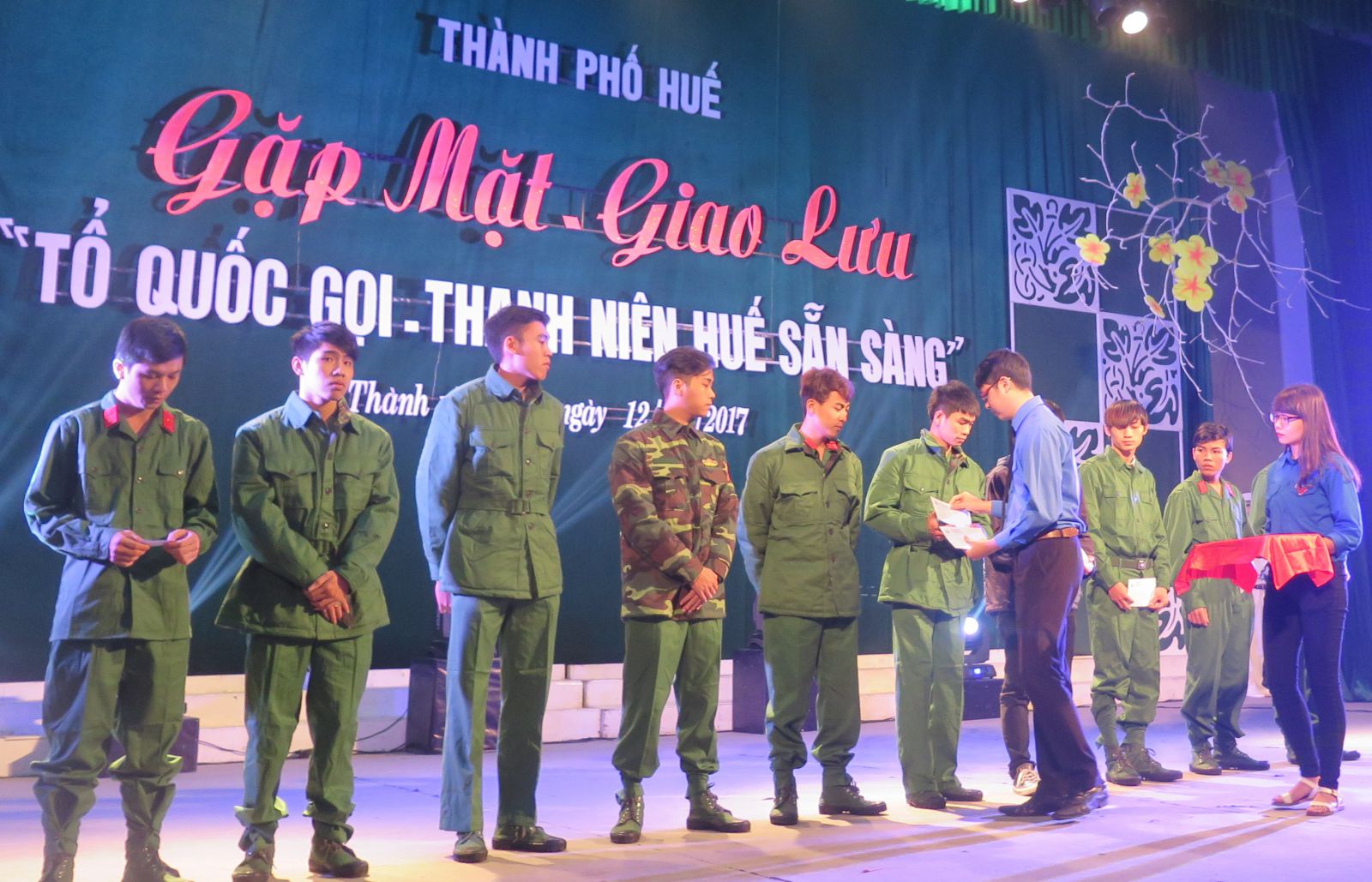Tại buổi giao lưu, ngoài những tiết mục văn nghệ đặc sắc do các bạn đoàn viên thanh niên biểu diễn, 351 thanh niên của TP Huế chuẩn bị lên đường nhập ngũ được xem phim tư liệu về sinh hoạt, học tập, huấn luyện của tân binh tại các đơn vi, nhận quà may mắn và giao lưu với các thế hệ trước đã và đang công tác trong các đơn vị quân đội. Qua đó, tăng thêm kiến thức, hiểu biết về những sinh hoạt, tác phong trong quân ngũ, đồng thời gửi gắm tâm tư, tình cảm cũng như thể hiện quyết tâm thực hiện tốt nghĩa vụ quân sự, góp phần bảo vệ Tổ quốc.