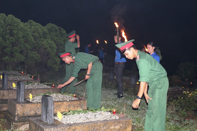 | Đoàn viên, thanh niên thắp hương tại các phần mộ liệt sĩ |