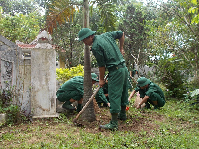 Tại di tích lịch sử Nghĩa trang cụ Phan Bội Châu (phường Trường An, TP. Huế)… hơn 200 đoàn viên thanh niên, đội viên tiến hành tổng vệ sinh trong và ngoài nghĩa trang, làm sạch cỏ, rác, vệ sinh các phần mộ, dâng hương.