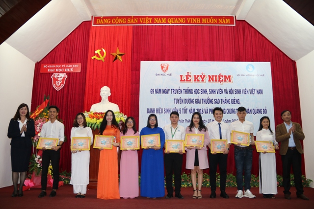 *Tại Đại học (ĐH) Huế diễn ra lễ kỷ niệm 69 năm ngày truyền thống học sinh, sinh viên và Hội sinh viên Việt Nam (9/1/1950 – 9/1/2019), tuyên dương giải thưởng Sao Tháng Giêng và danh hiệu Sinh viên 5 tốt năm 2018. Tại lễ kỷ niệm, Hội Sinh viên ĐH Huế đã ôn lại truyền thống 69 năm phong trào học sinh, sinh viên và xây dựng, phát triển của Hội Sinh viên Việt Nam; giúp sinh viên hiểu thêm về truyền thống đấu tranh cách mạng, truyền thống hiếu học của sinh viên ĐH Huế.