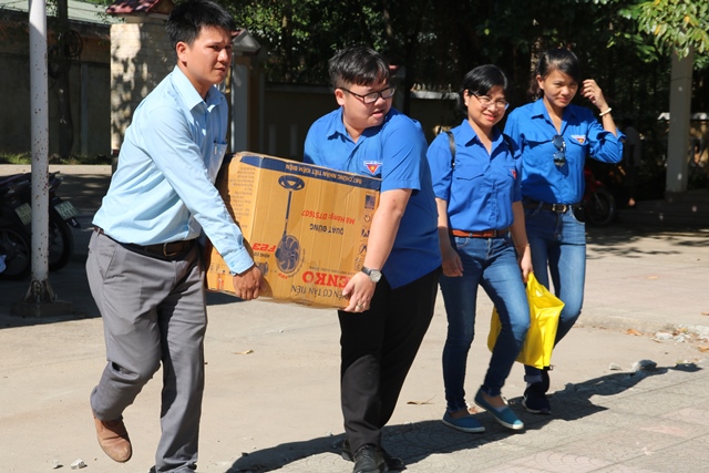 Đoàn viên Chi đoàn Báo Thừa Thiên Huế mang sách đến tặng thư viện của Trung tâm Bảo trợ xã hội