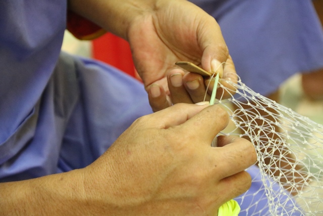 Bệnh nhân học nghề tại trung tâm đan lưới rất thành thạo