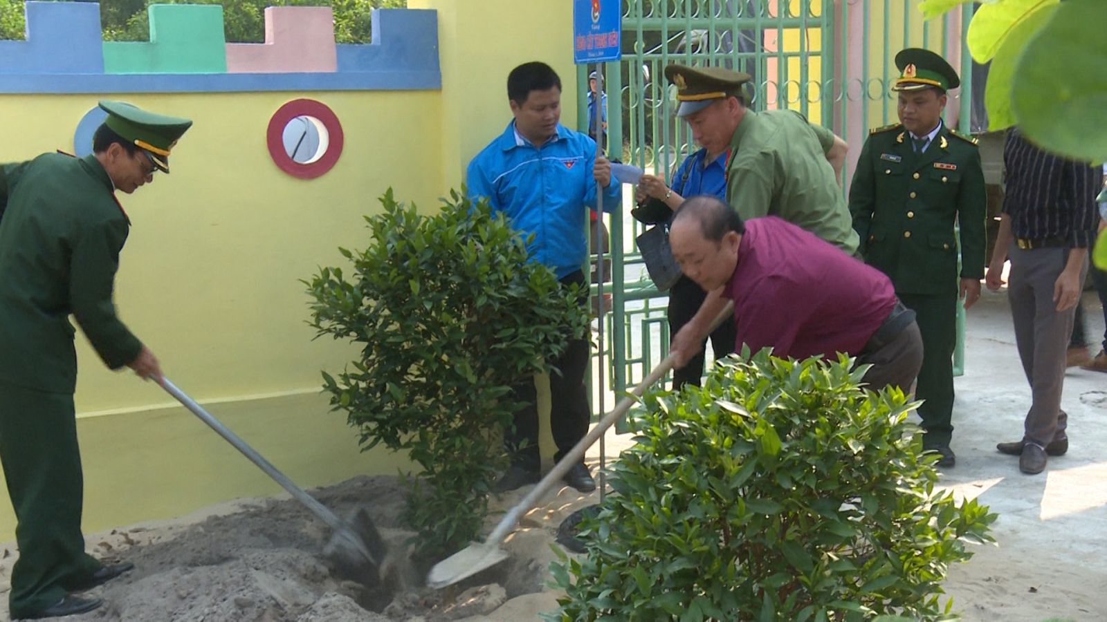 Chỉ huy BĐBP tỉnh, Công an tỉnh và lãnh đạo địa phương trồng cây xanh sau lễ phát đông
