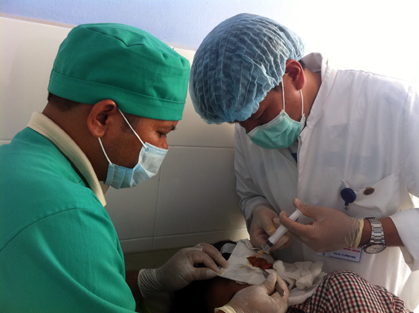 Thạc sĩ, Bác sĩ Lê Hồng Phúc, Bí thư Đoàn TNCS Hồ Chí Minh Trường ĐH Y Dược Huế (bên phải), hướng dẫn kỹ thuật cho bác sĩ Trưởng Trạm y tế A Roàng