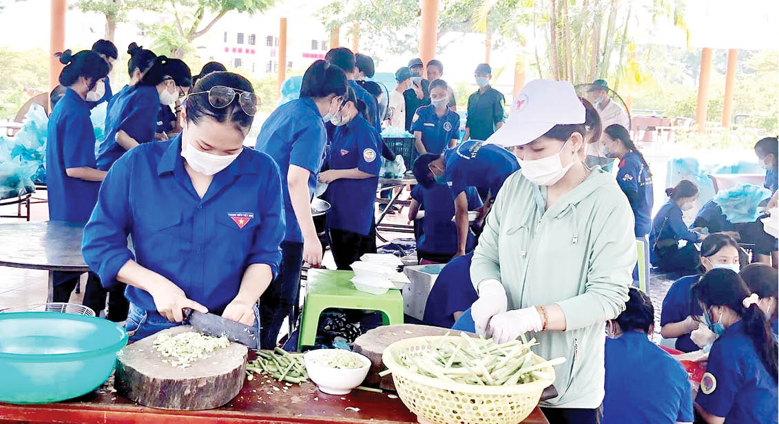 Đến giúp đỡ mọi người tại những quán cơm từ thiện tại Trường đại học (ĐH) Luật, ĐH Huế, tôi bắt gặp không ít các bạn sinh viên đang tham gia làm công tác hậu cần ở nơi đây. Các bạn, mỗi người một tay, phụ giúp làm hàng ngàn suất cơm hỗ trợ cho bà con tại các khu cách ly. Nguyễn Minh Thư, sinh viên Trường ĐH Luật chia sẻ, khi biết mình được điều động cho công tác hậu cần, em và các bạn đều bày tỏ niềm hào hứng, muốn được tiếp sức cho công tác phòng, chống dịch bệnh. Sức lực của mỗi người tuy không lớn nhưng đã góp phần nào cùng tuyến đầu chống dịch, hỗ trợ và san sẻ khó khăn với bà con từ TP. Hồ Chí Minh trở về Thừa Thiên Huế thực hiện cách ly, mong ngày đoàn tụ với gia đình.