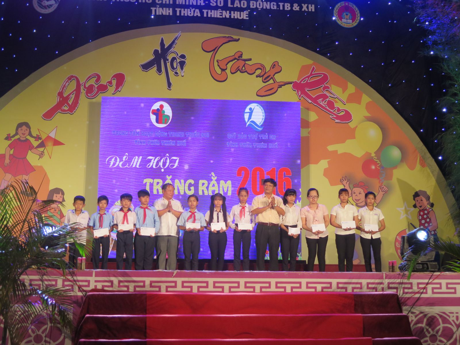 Dịp này, ban tổ chức trao 56 suất học bổng cho 56 em học sinh bị ảnh hưởng chất độc da cam dioxin, các em nhỏ tại các trung tâm nuôi dạy trẻ mô côi đạt thành tích cao trong học tập với tổng trị giá hơn 70 triệu đồng. Ngoài được phá cỗ và tặng quà trung thu, tham gia chương trình “Đêm hội trăng rằm” lần này, các em được hòa mình vào nhiều tiết mục phong phú, đa dạng như: Rước đèn ông sao, giao lưu văn nghệ, hoạt cảnh chú Cuội, chị Hằng, múa lân...