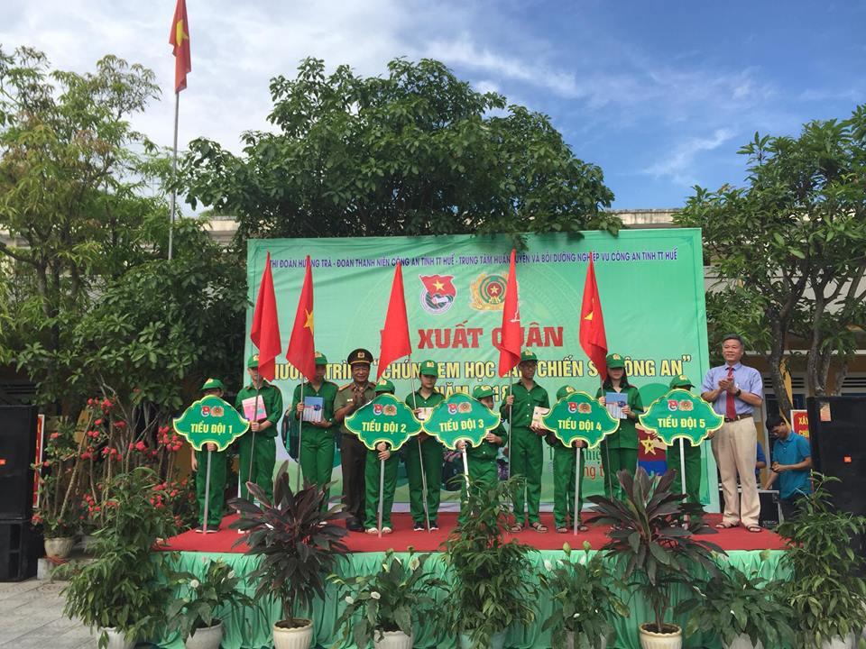 HNN.VN - Hưởng ứng tháng hành động vì trẻ em năm 2018 với chủ đề “Vì cuộc sống an toàn lành mạnh cho trẻ em trong thế giới công nghệ số”, ngày 28/5, tại thị xã Hương Trà, Ban Thường vụ Thị Đoàn phối hợp với Đoàn thanh niên Công an tỉnh, Trung tâm huấn luyện và bồi dưỡng nghiệp vụ Công an tỉnh tổ chức lễ xuất quân chương trình “Chúng em làm chiến sĩ công an” năm 2018.