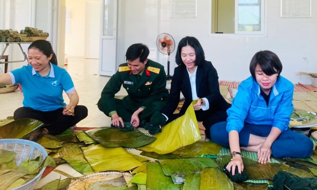 Đoàn viên thanh niên thị xã Hương Trà gói bánh chưng tặng người nghèo