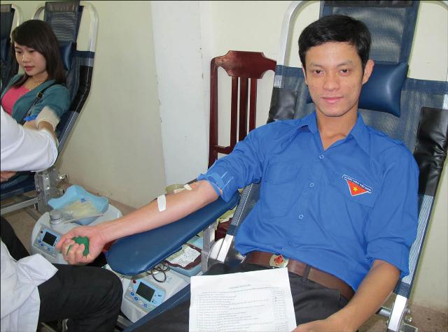 Anh Hồ Xuân Phương, Bí thư Đoàn phường Hương Vân tham gia hiến máu tình nguyện