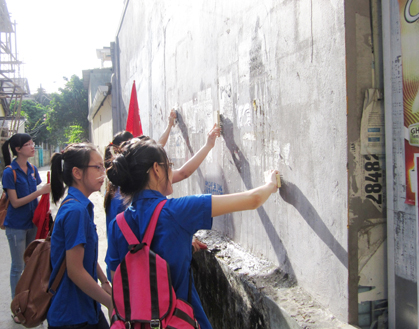 Các bạn đoàn viên thanh niên tham gia làm vệ sinh môi trường