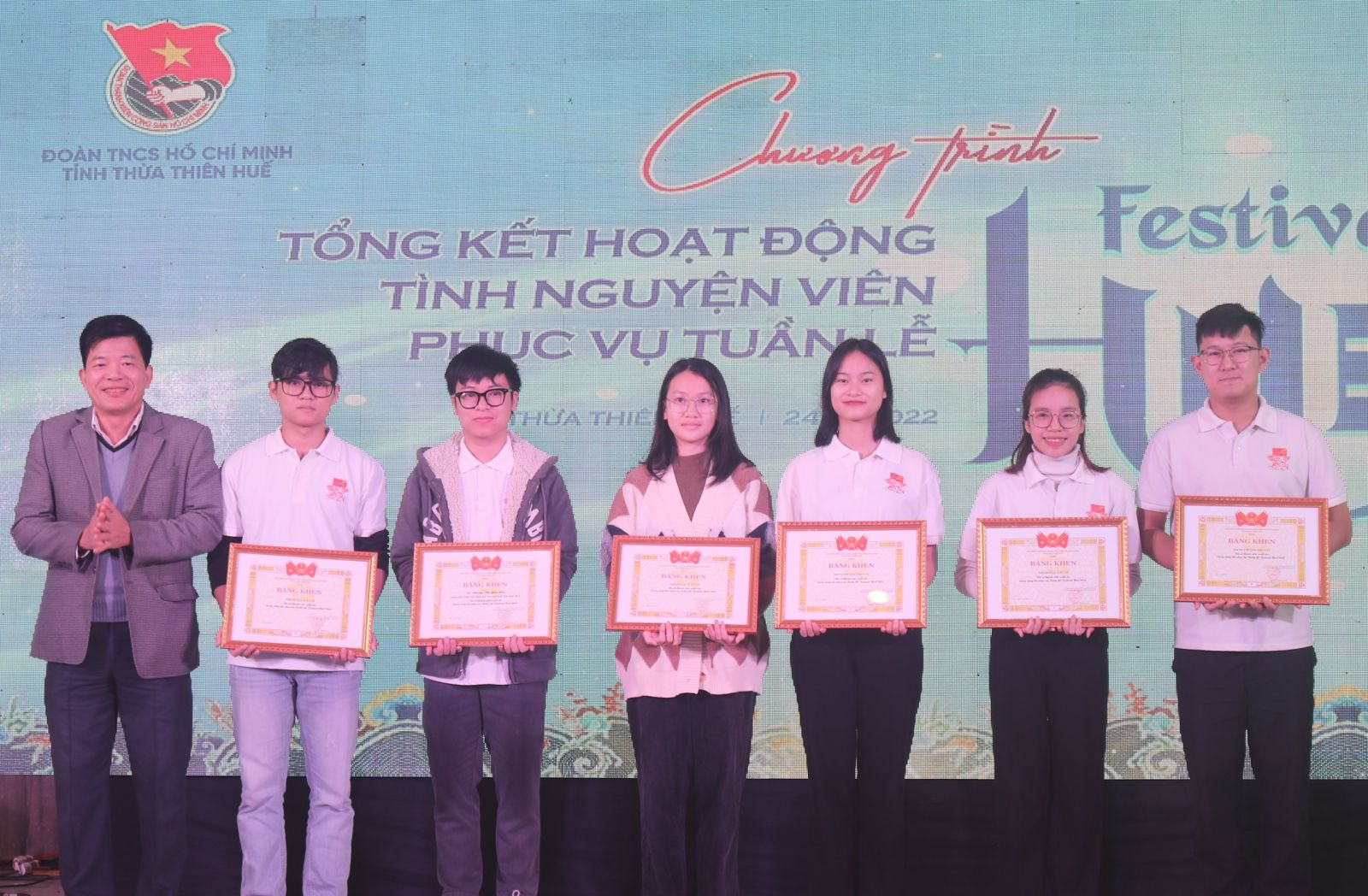 Dịp này, Ban Thường vụ Tỉnh đoàn đã tặng bằng khen cho 5 tập thể, 20 cá nhân có thành tích xuất sắc và trao giấy chứng nhận cho tất cả các tình nguyện viên tham gia phục vụ Tuần lễ Festival Huế 2022.