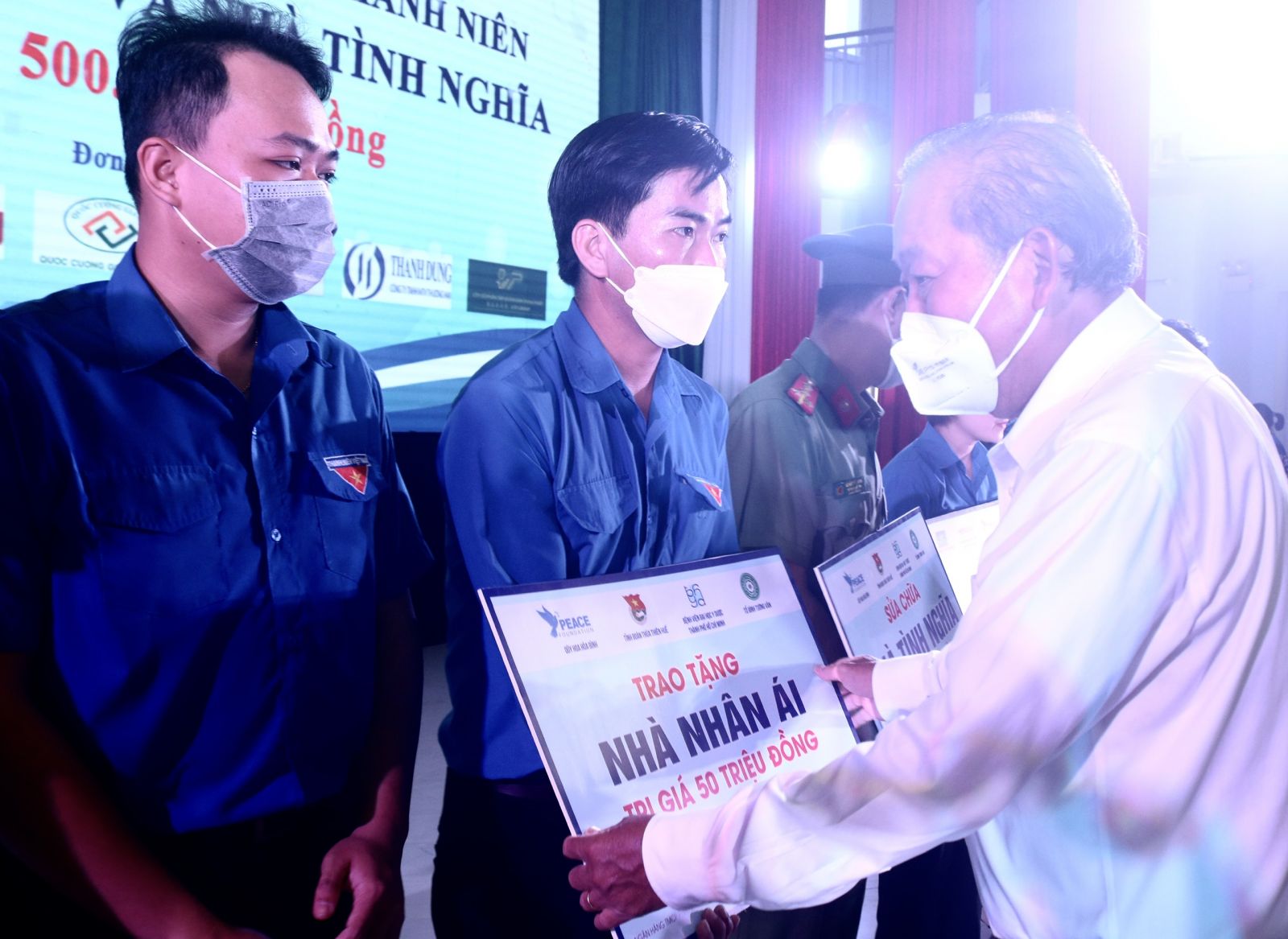 Nguyên Phó Thủ tướng Thường trực Chính phủ Trương Hòa Bình tặng Nhà nhân ái cho đại diện các huyện, thị, thành phố