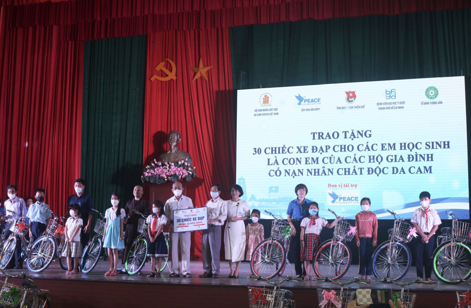 Đại diện các đơn tài trợ trao tặng xe đạp cho các em học sinh có hoàn cảnh khó khăn