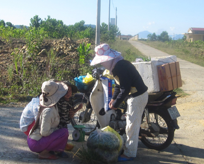 Cảnh mua bán của người dân trong làng (ảnh bên)