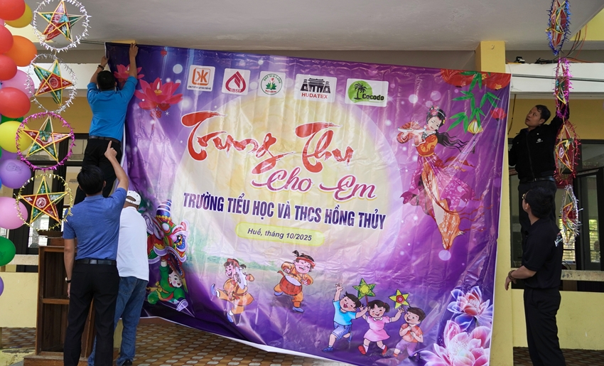HNN.VN - Ngày 1/10, Quỹ Sen xanh, Chi đoàn Báo và Phát thanh, Truyền hình Huế phối hợp cùng Công ty CP Xây lắp Thừa Thiên Huế, Ngân hàng Chính sách Xã hội thành phố Huế, Công ty CP May xuất khẩu Huế, Khách sạn Le Domaine De Cocodo tổ chức chương trình “Trung thu cho em” tại Trường Tiểu học và THCS Hồng Thủy (xã A Lưới 1).