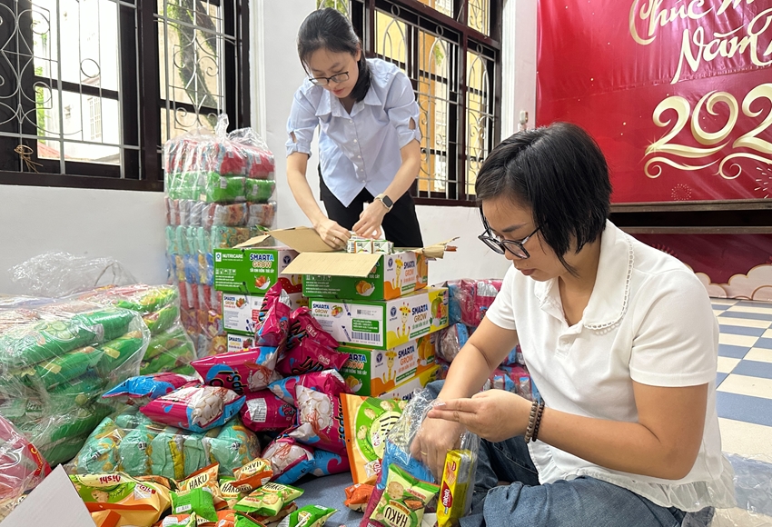 | Đoàn viên Chi đoàn Báo và Phát thanh, Truyền hình Huế chuẩn bị phần quà phá cỗ Trung thu cho các em học sinh từ nhiều ngày trước đó |