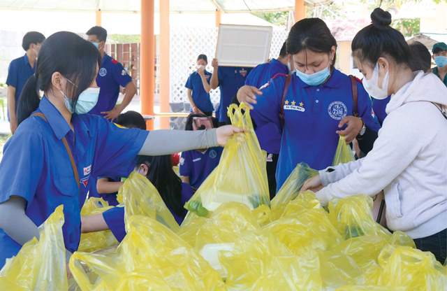 Hỗ trợ đóng gói suất ăn tại khu vực bếp tập trung của các khung cách ly