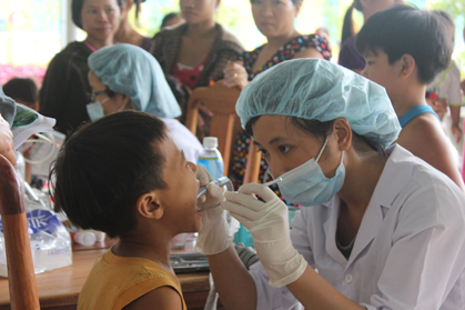 | Chiến sĩ tình nguyện khám răng cho em nhỏ ở Nam Đông |