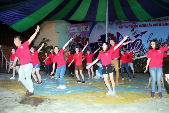 Các bạn trẻ trại Phong Điền nhảy flashmob trong đêm văn nghệ