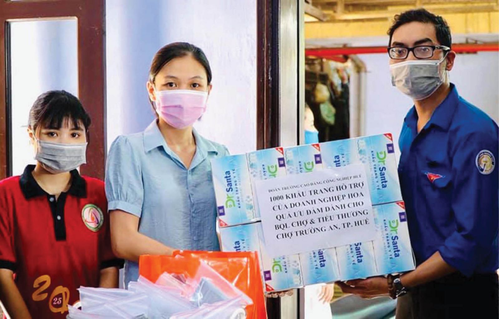 Anh Nguyễn Vũ Trọng Thi tặng khẩu trang cho tiểu thương