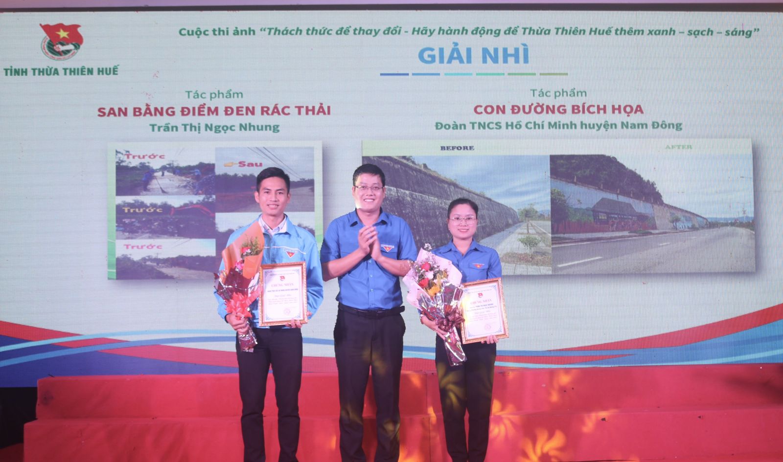 Đại diện Ban Tổ chức trao giải cho các tác phẩm tham gia Cuộc thi ảnh “Thách thức để thay đổi - Hãy hành động để Thừa Thiên Huế thêm Xanh - Sạch - Sáng”