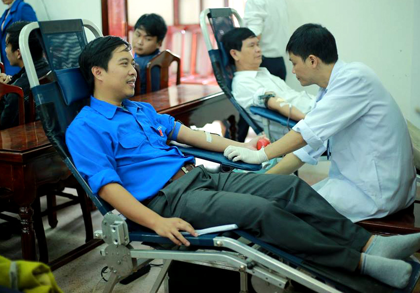 Anh Nguyễn Tiến Giang trong một lần hiến máu tình nguyện