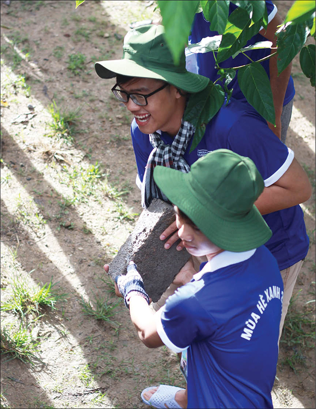 Đó là chưa kể công việc tình nguyện càng vất vả đối với ai chưa thạo, các bạn SV phải học thêm nhiều kỹ năng như trộn hồ, xây nhà, lắp điện… Lập vẫn còn nhớ có lần nhóm giúp đỡ xây nhà cho một gia đình đồng bào khó khăn, nơi đó khá xa và đường cực kỳ khó đi, em và các bạn khác đã lên phương án vận chuyện cát, xi măng… hoàn toàn bằng cách vác bộ. Trong những ngày nhóm hoạt động, bà con hái mía, bưởi, thanh trà cho các bạn sinh viên; còn các em nhỏ mỗi tối đều tập trung cùng các anh chị múa hát, chơi trò chơi. Vất vả, nhưng được bà con đồng bào yêu mến là phần thưởng lớn nhất đối với nhóm tham gia tình nguyện.