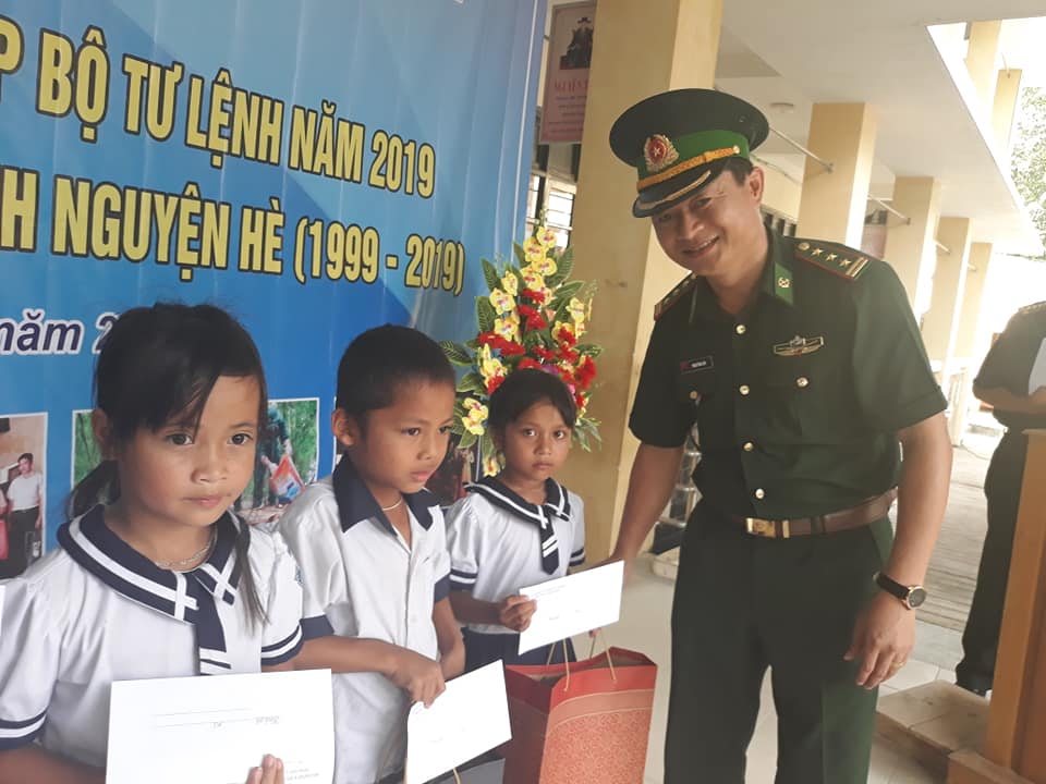 Thượng tá Phạm Tùng Lâm, Phó Chính ủy BĐBP tỉnh tặng quà cho học sinh