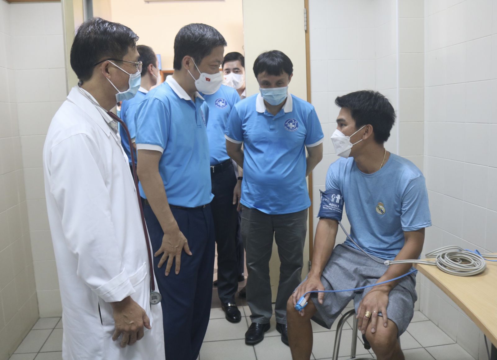 Trưởng Ban Kinh tế Trung ương Trần Tuấn Anh (ở giữa) thăm hỏi, động viên người dân tham gia chương trình chăm sóc sức khỏe hậu COVID - 19