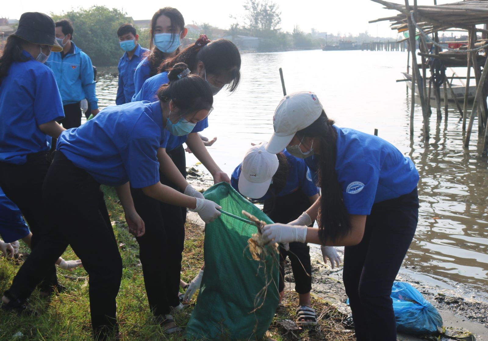 Đoàn viên, thanh niên tham gia dọn dẹp vệ sinh tại Khu neo đậu tàu thuyền An Dương...