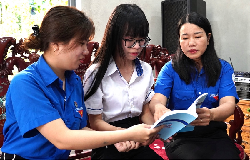 | Đoàn phường Thanh Thủy tuyên truyền về cuộc bầu cử cho những cử tri trẻ lần đầu tham gia bỏ phiếu |