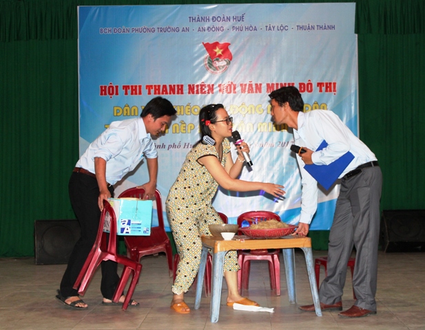 HNN.VN - Để phát động và học tập các cách làm hay về dân vận khéo vận động Nhân dân thực hiện nếp sống văn minh đô thị , Đoàn thanh niên 5 phường: Trường An, An Đông, Phú Hòa, Tây Lộc, Thuận Thành tổ chức Hội thi thanh niên với văn minh đô thị “Dân vận khéo vận động Nhân dân thực hiện nếp sống văn minh đô thị” tối 27/5.