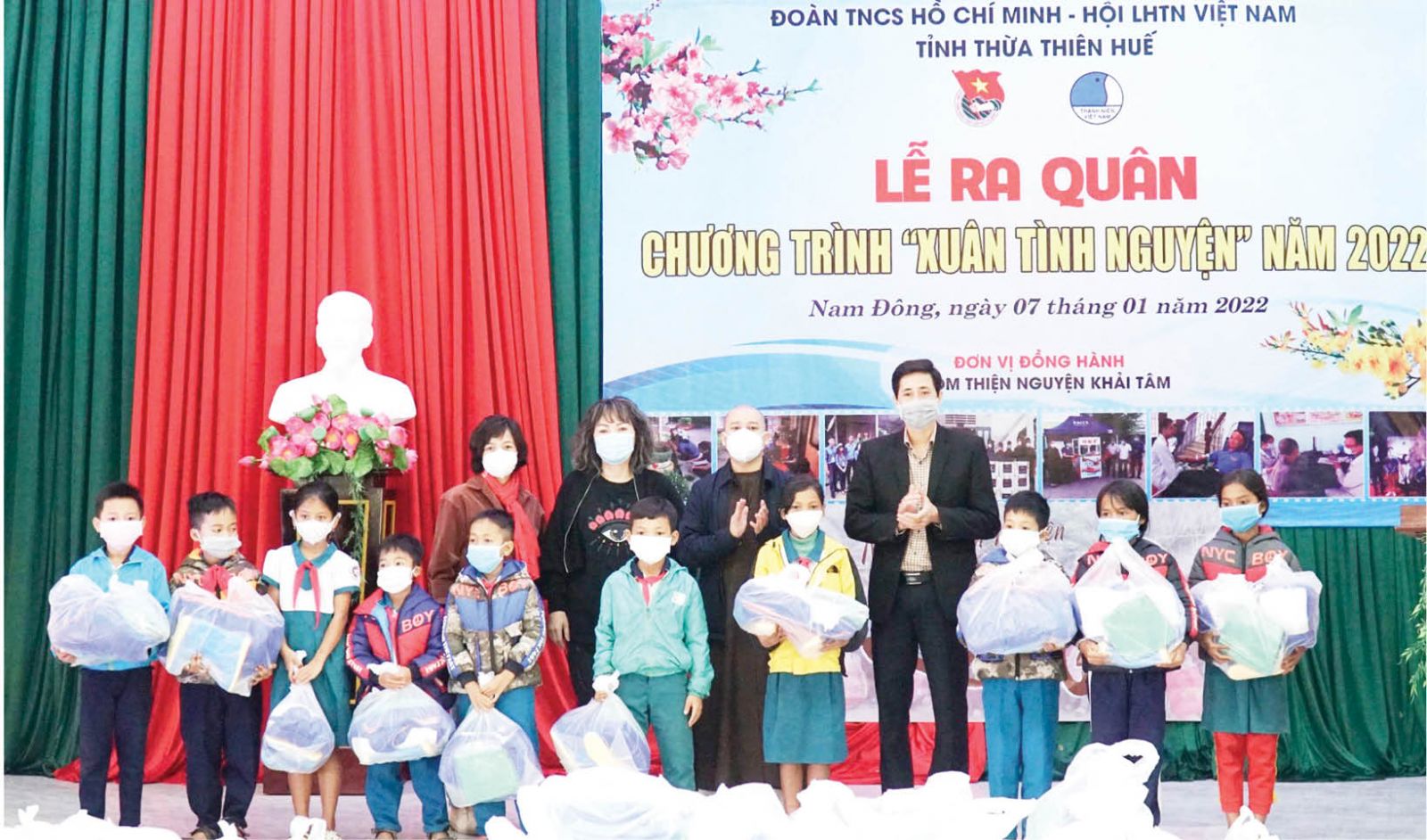 Đầu tháng 1 vừa qua, Ban Thường vụ Tỉnh đoàn tổ chức ra quân Chương trình “Xuân tình nguyện” năm 2022 tại huyện Nam Đông. Chương trình đã trao 330 suất quà gồm áo ấm, dụng cụ học tập cho các học sinh có hoàn cảnh khó khăn, trị giá 300 nghìn đồng/suất. Ngoài ra, 30 phần quà nhu yếu phẩm với tổng trị giá 15 triệu đồng cũng được đại diện Tỉnh đoàn hỗ trợ người dân địa phương gặp khó khăn do ảnh hưởng dịch bệnh.