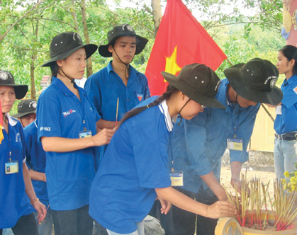 Thế hệ trẻ dâng hương tưởng nhớ các liệt sĩ. Ảnh: T.Ninh