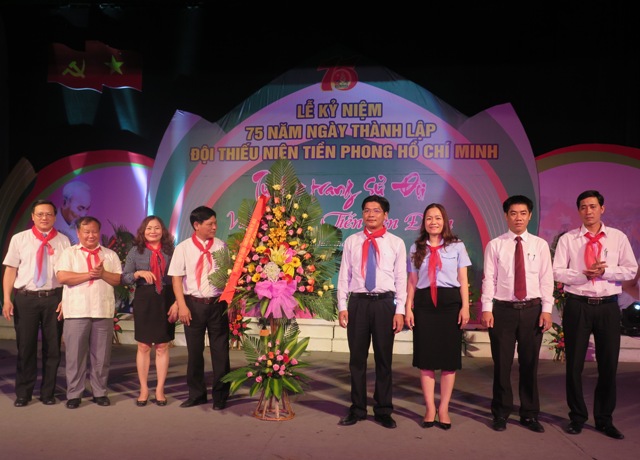 | Đại diện Ban Thường vụ Tỉnh ủy tặng hoa chúc mừng ngày thành lập Đội |