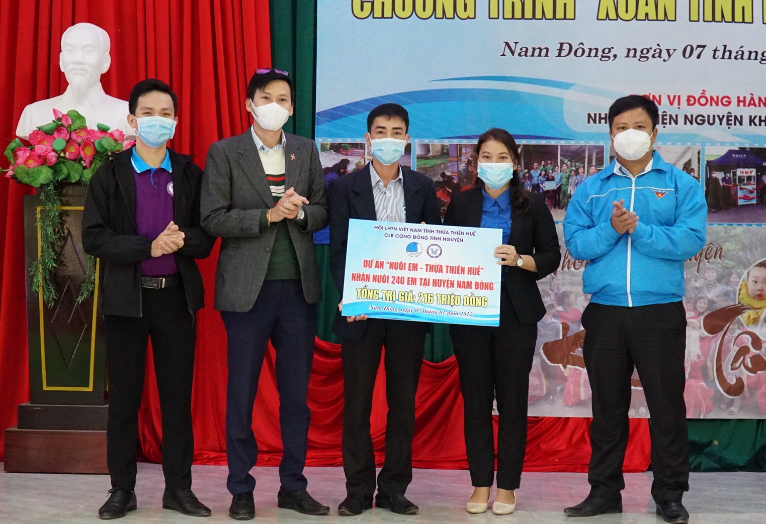 Dịp này, Dự án “Nuôi em - Thừa Thiên Huế” do CLB Cộng đồng tình nguyện tỉnh Thừa Thiên Huế triển khai chính thức nhận nuôi 240 em học sinh có hoàn cảnh khó khăn trên địa bàn huyện Nam Đông.