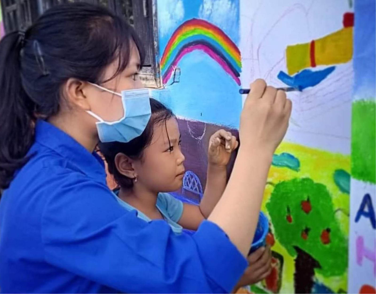 Hướng dẫn các em nhỏ vẽ tranh trên tường